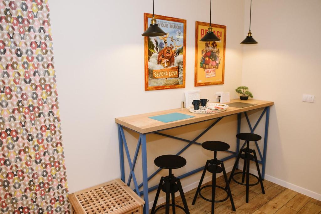 čajna kuhinja, frižider, mikrotalasna rerna, kuhinja, električno kuvalo, posuđe, ploča za kuvanje, toster, sredstva za čišćenje, sto za ručavanje, čaše za vino