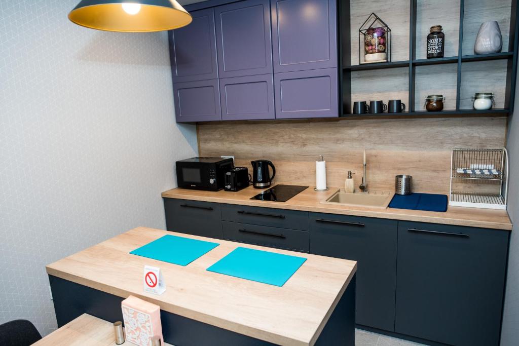 čajna kuhinja, frižider, mikrotalasna rerna, kuhinja, električno kuvalo, posuđe, ploča za kuvanje, toster, aparat za kafu, sto za ručavanje, čaše za vino