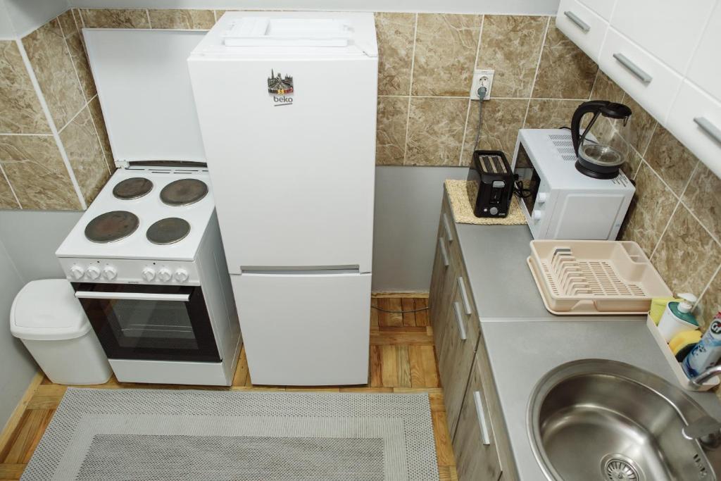 frižider, mikrotalasna rerna, mašina za pranje veša, kuhinja, električno kuvalo, posuđe, rerna, ploča za kuvanje, toster, sredstva za čišćenje, sto za ručavanje, čaše za vino