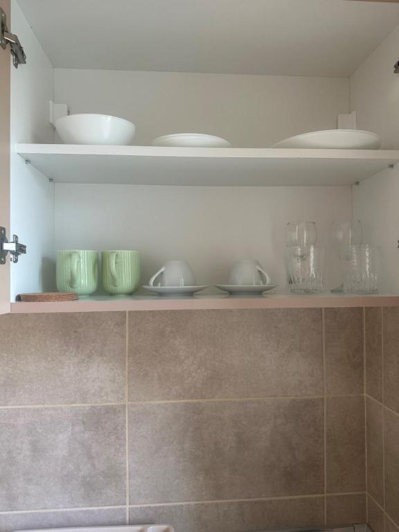 čajna kuhinja, frižider, kuhinja, posuđe, ploča za kuvanje, toster, sto za ručavanje, čaše za vino
