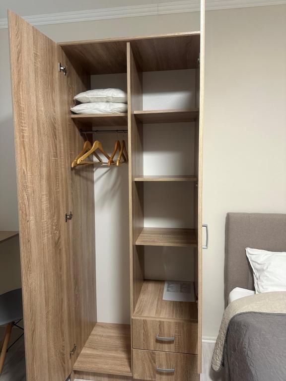 vešalica za odeću, utičnica pored kreveta, jastuk bez perja