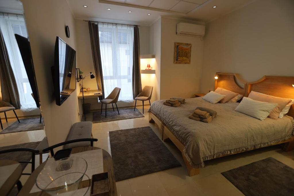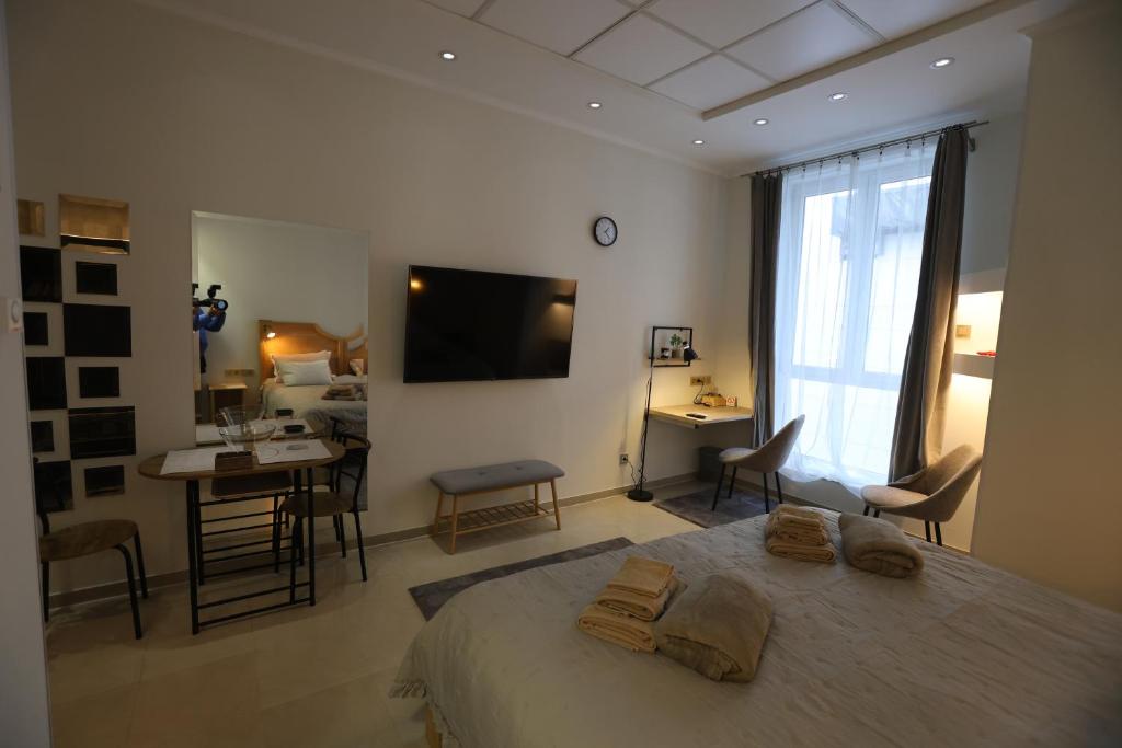 The spacious quadruple room provides air conditioning, a private entrance, as well as a private bathroom featuring a walk-in shower and a bath. Meals can be prepared in the well-fitted kitchenette, which is equipped with a refrigerator, kitchenware, a toaster and an electric kettle. This quadruple room features soundproof walls, flat-screen TV, city views, as well as chocolate for guests. The unit offers 2 beds.